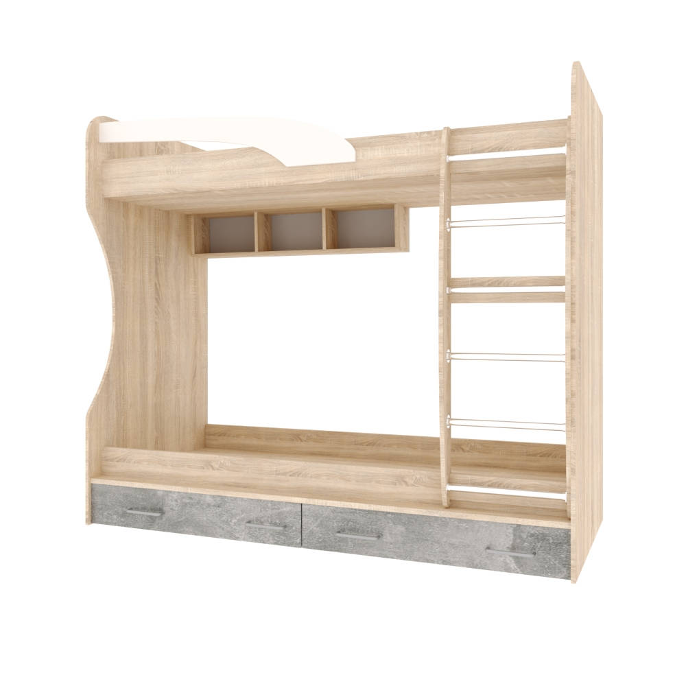 Спальня Колибри Лофт кровать двойная дуб сонома/ателье светлое+акрил белый