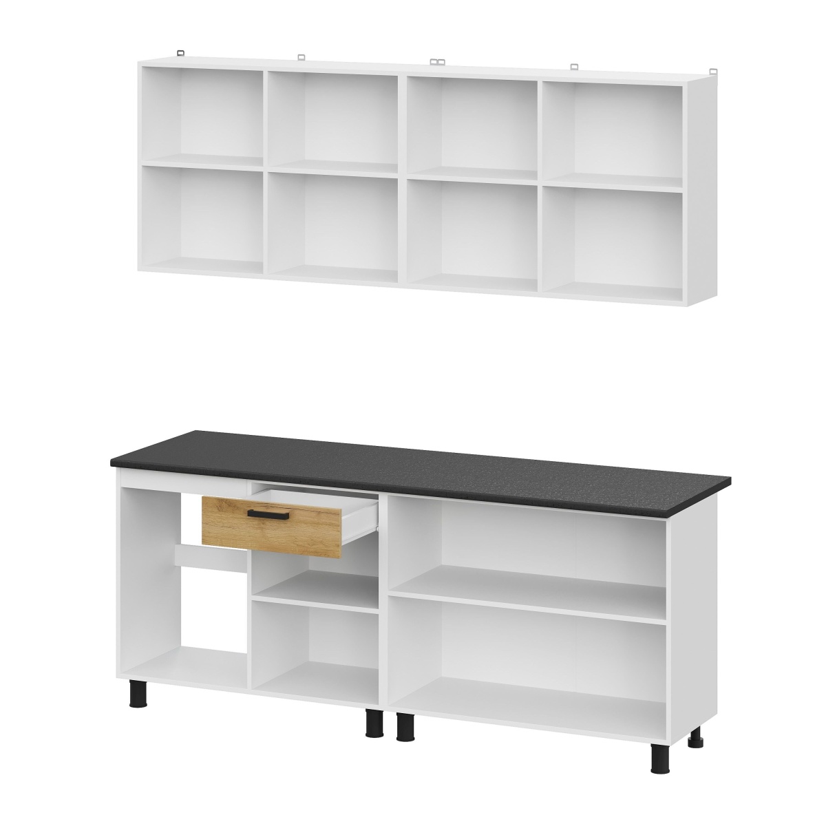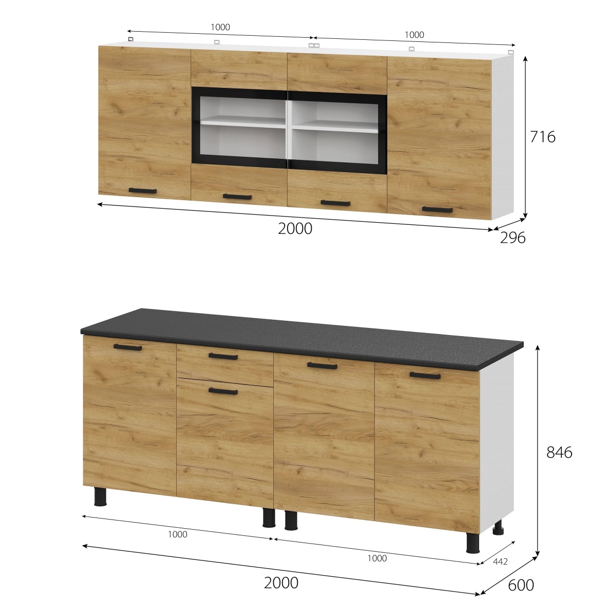 Кухонный гарнитур "Абрау" (2,0м) Белый/Дуб Золотой/Черный