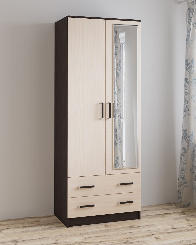 Шкаф комбинир-й Лагуна (0,8) с зеркалом венге/дуб молочный