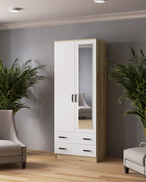 Шкаф комбинир-й Лагуна (0,8) с зеркалом дуб делано/белый
